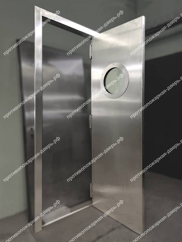 Маятниковая остекленная дверь из нержавеющей стали АРТ-pd396