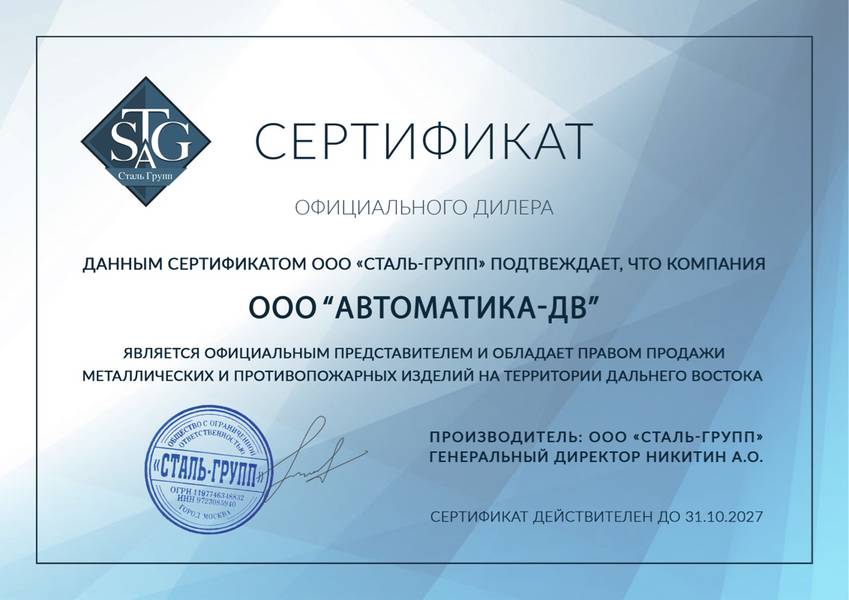 КАЖДОЙ ДИЛЕРСКОЙ ОРГАНИЗАЦИИ ПРЕДОСТАВЛЯЕТСЯ ОФИЦИАЛЬНЫЙ СЕРТИФИКАТ, ПОДТВЕРЖДАЮЩИЙ ПРАВО НА РЕАЛИЗАЦИЮ ПРОДУКЦИИ